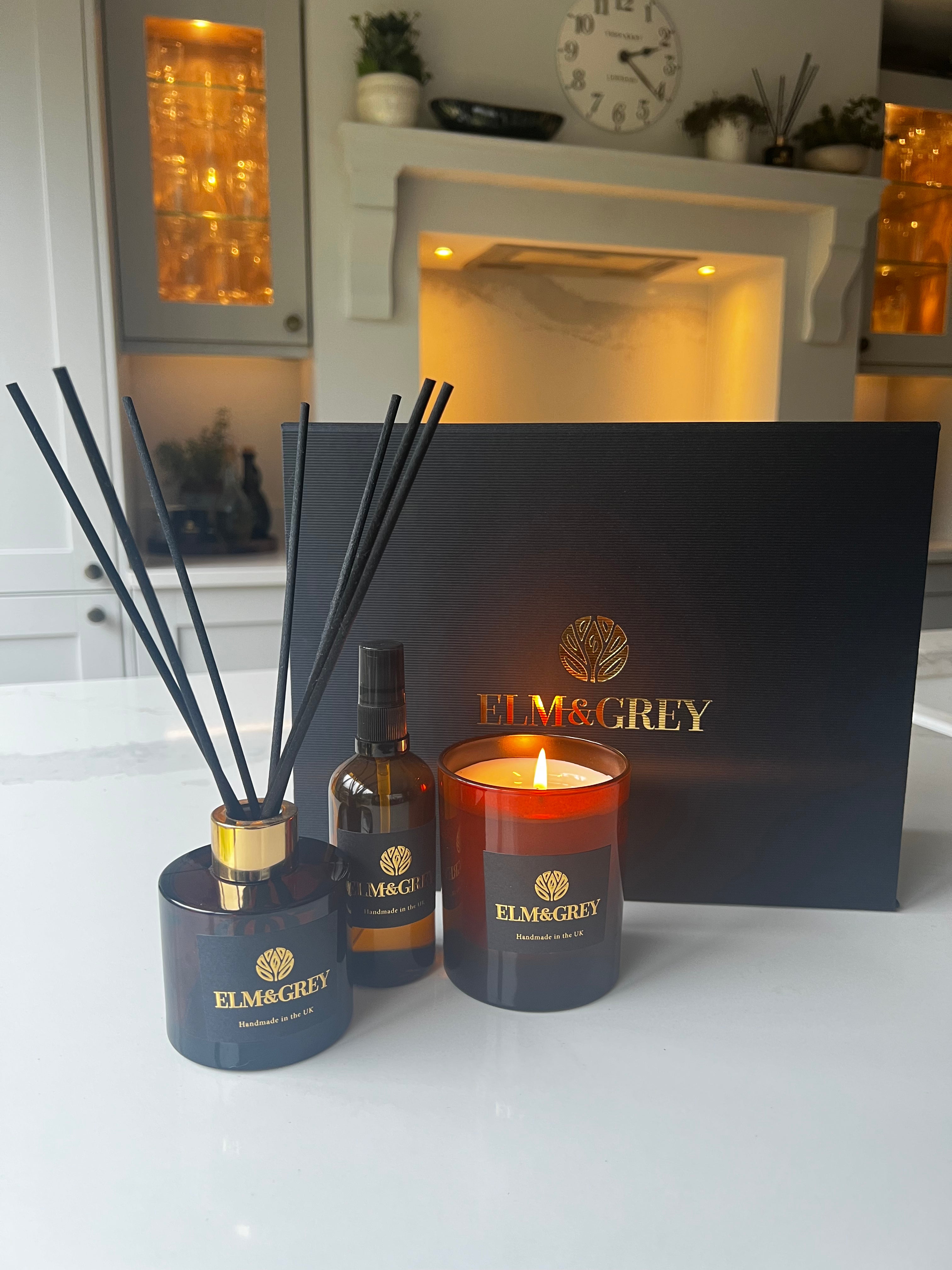Each Elm & Grey Scent Ritual Gift Box is carefully prepared in our Wiltshire studio and presented in our elegant black magnetic gift box — ready to give and ready to delight.