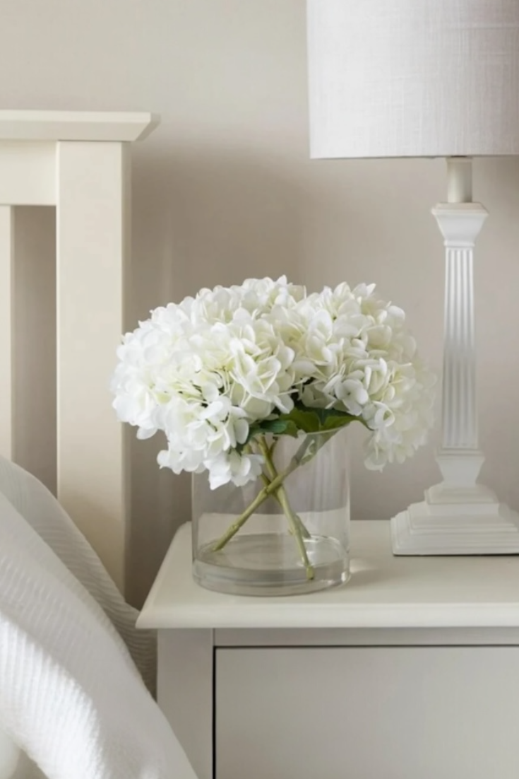 Faux Hydrangea Arrangement in Cylinder Vase