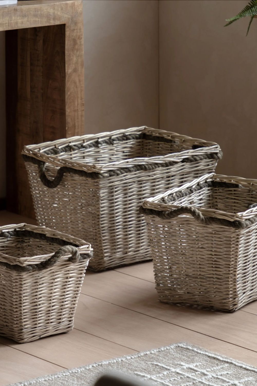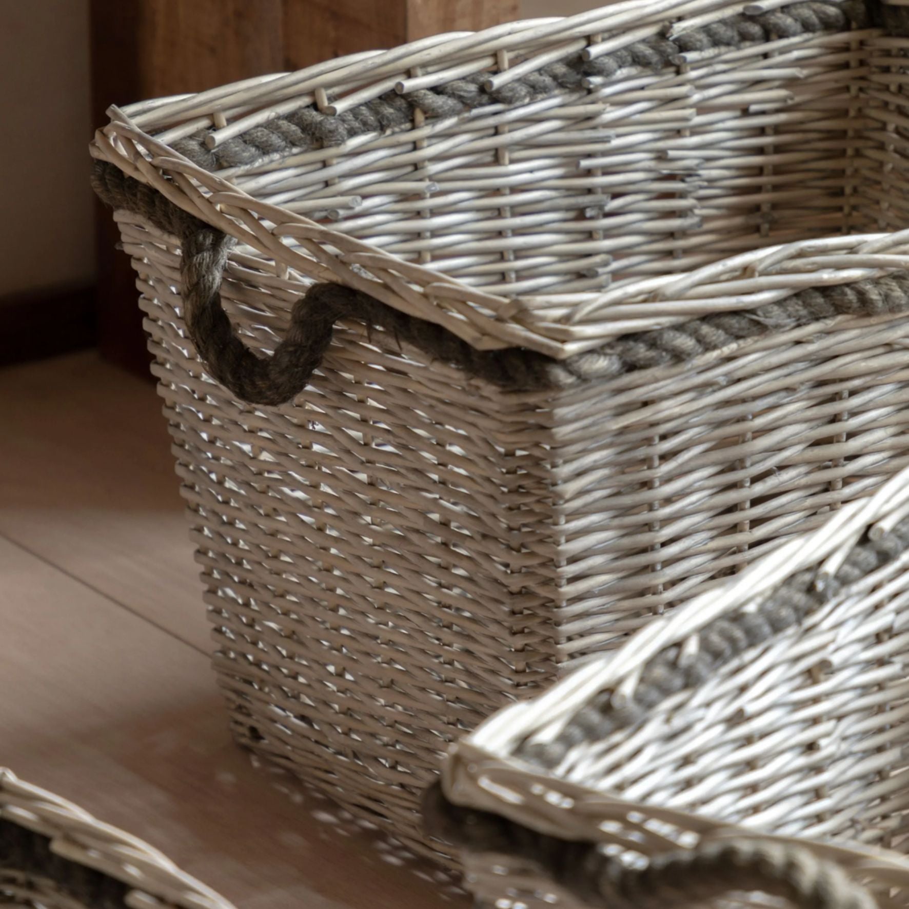 Willow Open-Ended Natural Log Baskets with Handles - Set of 2