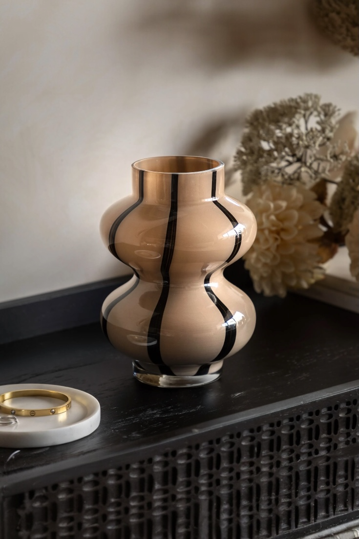 Arlo Stripe Glass Vase – Handblown Taupe Vase with Contrasting Detail